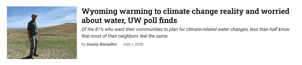 As the lead researcher on the Wyoming Survey on Climate, Water, and People, I provided an interview to WyoFile about the survey’s most interesting results.
